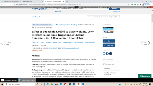 Not sure I want to rinse my nose everyday for sinus problems, but here goes. I advise rinsing the nose for chronic sinusitis every day, but patients initially turn their nose up at this suggestion (pun intended). I find myself intrigued at the interest in nasal irrigation, flushing, or whatever else you want to call it. So who did I turn to but #Reddit Allergy. So what to my wondering eyes did appear, but questions abound for the right sinus rinse! Google search for sinus rinse yields > 7,000,000 hits and searching PubMed 750–you think there might be a problem there? Misinformation abounds and of course every advertiser/company has the best product! Who do you believe? I’m about to give you some guidelines that you can rest assured have at least been studied in one published article. And by the way, to answer your question below, if the water doesn’t come out the other side, you’ve got nasal congestion that needs further evaluation by your allergist or ENT. My comments are highlighted in RED in the lists after each article. There is no test at the end, but maybe next time….