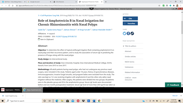 - In this study, almost 25% of ALL participants had recurrence of chronic sinusitis, but it was improved in the amphotericin B rinse group. IgE went down as well. It’s nice to know that something works for sinus problems, but now that we have DUPIXENT, the results are probably even more of a game changer!